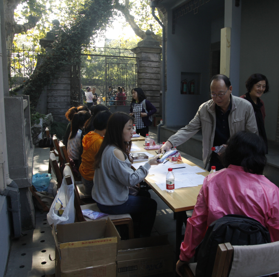晴朗的秋日阳光明媚,空气清爽。老师们一早即陆续从南山校区出发,循着湖畔一路向北,途径一公园和湖滨,沿着白堤到达孤山路2号明鉴楼,全程共约3.7公里,徒步用时约一小时。